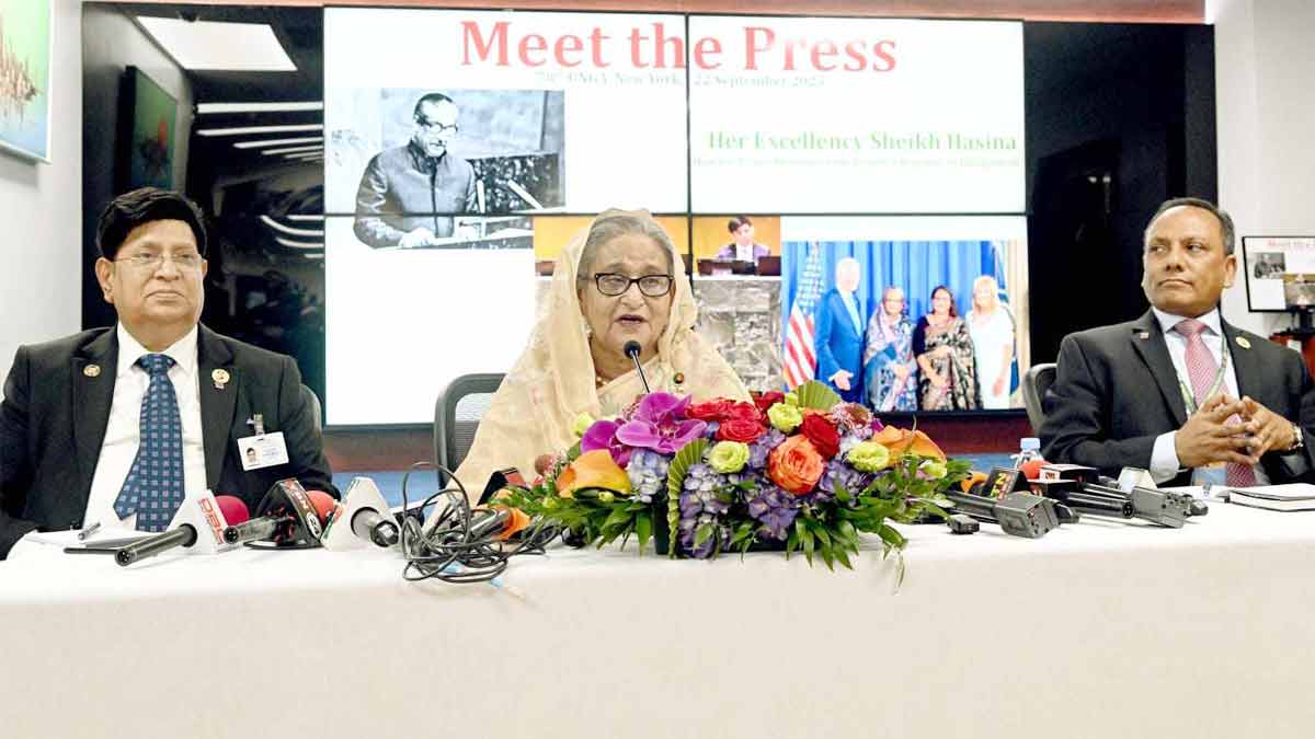 শুক্রবার জাতিসংঘের সাধারণ পরিষদের ৭৮তম অধিবেশনে ভাষণ দেওয়ার পর এক সংবাদ সম্মেলনে প্রধানমন্ত্রী বলেন, ‘কেউ যদি দেশের বাইরে থেকে নির্বাচন বানচালের চেষ্টা করে তবে দেশের জনগণ তাদের স্যাংশন দিয়ে দেবে।’