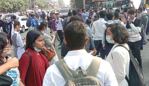 সোমবার দুপুরে রাজধানীর নীলক্ষেত মোড়ে অবস্থান নিয়ে বিক্ষোভ করেন শিক্ষার্থীরা। পরে নয় দফা তুলে ধরে বিআরটিএ ভবন ঘেরাওয়ের কথা জানান তারা।