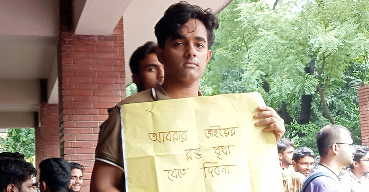 বুধবার (৯ আগস্ট) সকাল থেকে ক্লাস বর্জনের এই কর্মসূচি শুরু হয়। এরপর সকাল দশটা থেকে শিক্ষার্থীরা উপাচার্য অফিসের সামনে অবস্থান নেওয়া শুরু করে। এ সময় তাদের হাতে ‘নো ক্যাম্পাস শেয়ারিং উইথ অ্যা মার্ডারার’, ‘বিটুর আজীবন বহিষ্কার নিশ্চিত চাই’, ‘আবরার ভাইয়ের রক্ত, বৃথা যেতে দেব না’ লেখা সংবলিত বিভিন্ন প্ল্যাকার্ড দেখা যায়।