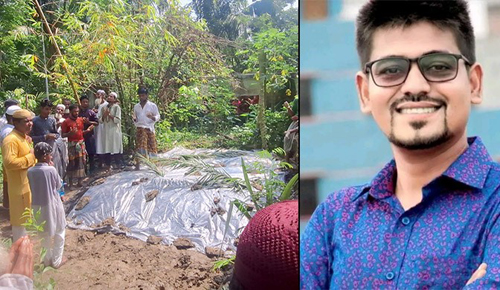 শুক্রবার সকাল ৭টার দিকে তার নানাবাড়ি উপজেলার শতকর এলাকায় প্রথম জানাজা ও তালুকের চরদুয়ানি তালিমুল কোরআন মাদ্রাসা মাঠে দ্বিতীয় জানাজা শেষে তার মরদেহ সমাহিত করা হয়।