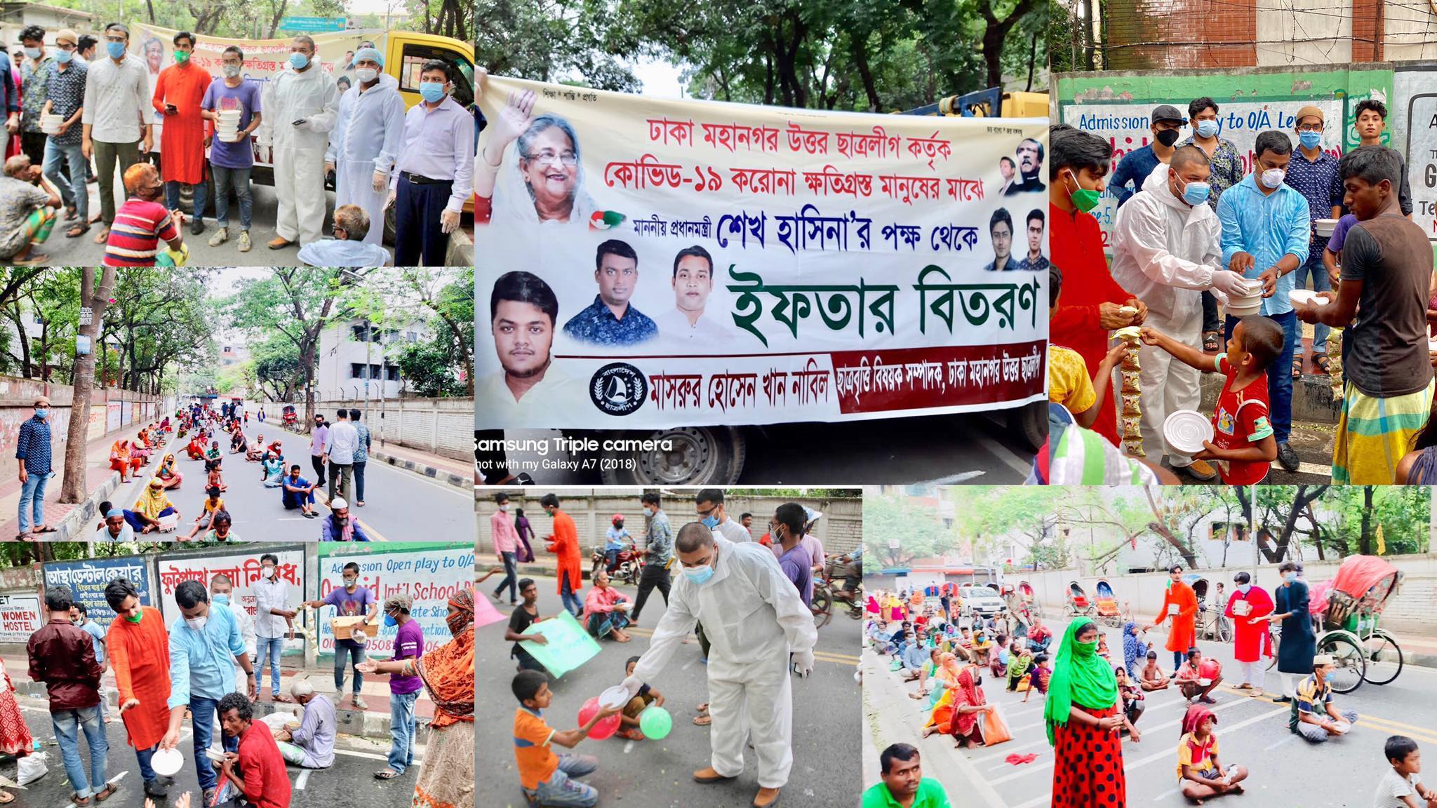 করোনা ভাইরাসের কারণে কর্মহীন পরিবার ও দু:স্থদের মাঝে ইফতার সামগ্রি বিতরণ করেছে ঢাকা মহানগর উত্তর ছাত্রলীগ।