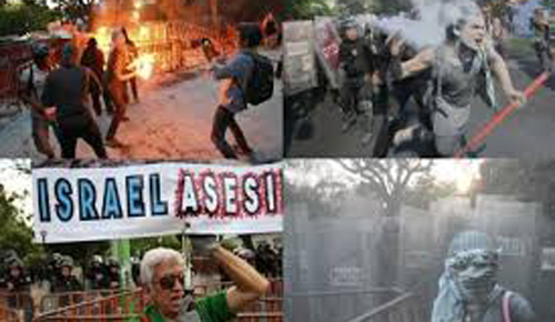 সেই অনুযায়ী লোমাস ডি শাপুলটেপেকে বুধবার জড়ো হন প্রায় ২০০ ফিলিস্তিনপন্থি আন্দোলনকারী কিন্তু দাঙ্গা পুলিশ আগে থেকেই সেখানে ব্যারিকেড দিয়ে অবস্থান নেওয়ায় তাদের সঙ্গে সংঘর্ষ শুরু হয় বিক্ষোভকারীদের।