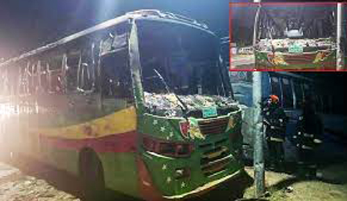 যাত্রী তোলার জন্য থামিয়ে রাখা বাসটিতে আগুন দিয়ে পালিয়ে যায় তারা।