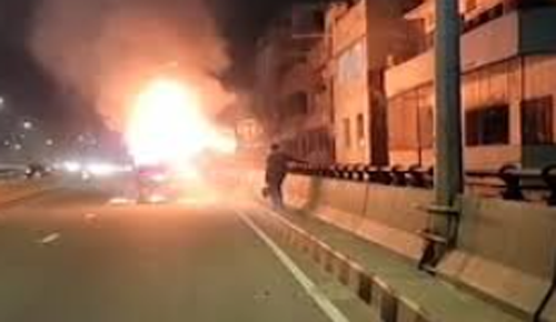 আইএনবি ডেস্ক:রাজধানীর হানিফ ফ্লাইওভারে চলন্ত একটি ট্রাকে আগুন লাগার ঘটনা ঘটেছে। আগুন নিয়ন্ত্রণে কাজ করছে ফায়ার সার্ভিস অ্যান্ড সিভিল ডিফেন্সের দুটি ইউনিট।