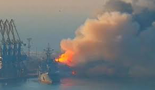 এদিকে ইউক্রেনে ওই অঞ্চলের গভর্নর সামাজিক যোগাযোগমাধ্যমে জানিয়েছেন, ইউক্রেনের তৈরি দুইটি ক্ষেপণাস্ত্রের আঘাতে জাহাজটি ক্ষতিগ্রস্ত হয়েছে। তবে এ ব্যাপারে ইউক্রেনের প্রতিরক্ষামন্ত্রণালয় কোনো মন্তব্য করেনি। তবে এটা রাশিয়ার জাহাজে হামলার দ্বিতীয় ঘটনা। কারণ গত মাসেও রাশিয়ার একটি যুদ্ধজাহাজ ধ্বংসের দাবি করে ইউক্রেন।