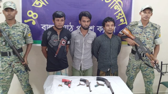 এসময় তাদের কাছ থেকে ২টি ওয়ান শুটারগান, ১টি দেশীয় তৈরি রিভালবার, ৩ রাইফেলের গুলি, ৪ রাউন্ড পিস্তলের গুলি ও ৩ রাউন্ড শর্টগানের কার্তুজ উদ্ধার করা হয়। গ্রেফতারকৃতরা হলেন উখিয়ার ৭ নম্বর রোহিঙ্গা ক্যাম্পের জি-৭ ব্লকের বাসিন্দা মোঃ সিদ্দিক এর ছেলে।