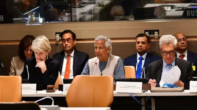 এসময় ড. মুহাম্মদ ইউনূস বিশ্ব নেতৃবৃন্দকে স্মরণ করিয়ে দেন যে, বাংলাদেশ প্রায় ১২ লাখ রোহিঙ্গা শরণার্থীকে আশ্রয় দিয়েছে এবং প্রতিবছর ৩২ হাজার নতুন শিশু জন্ম নিচ্ছে। সম্প্রতি ২০ হাজার নতুন শরণার্থী বাংলাদেশে প্রবেশ করেছে। তিনি বলেন, রোহিঙ্গা সংকট বাংলাদেশে সামাজিক, অর্থনৈতিক ও পরিবেশগত চাপ তৈরি করছে, যা নিরাপত্তা ঝুঁকিরও জন্ম দিচ্ছে।