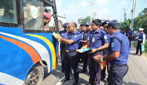 শরীয়তপুরে নতুন আইন সম্পর্কে পুলিশের সচেতনতামূলক লিফলেট বিতরণ