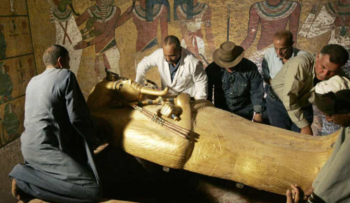 সেই অভিযানে পাথরের তৈরি একটি বাক্স খুঁজে পাওয়া গিয়েছিল। তার মধ্যে মোট তিনটি শবাধার রাখা ছিল। তিনটি শবাধারের একটি ছিল পুরু সোনার তৈরি। ওই কফিনের মধ্যেই পাওয়া যায় তুতেনখামেনের প্রায় তিন হাজার বছর আগেকার মমি।