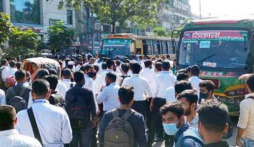 আইএনবি ডেস্ক: ঢাকা কলেজের শিক্ষার্থীরা বাসে হাফ পাস চালু ও শিক্ষার্থীদের সঙ্গে অসদাচরণের প্রতিবাদে এক ঘণ্টা সড়ক অবরোধ করেছে ।