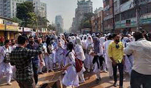 আইএনবি ডেস্ক: রাজধানীর বকশি বাজার সড়ক অবরোধ করে আন্দোলন করছে বেগম বদরুন্নেসা সরকারি মহিলা কলেজ ও ঢাকা কলেজের শিক্ষার্থীসহ সাত কলেজের ছাত্র-ছাত্রীরা। হাফ ভাড়া দিতে চাওয়ায় ধর্ষণের হুমকির প্রতিবাদ ও বিচারের দাবিতে আজ সকাল থেকে তারা সড়ক অবরোধ করে বিক্ষোভ করছেন।