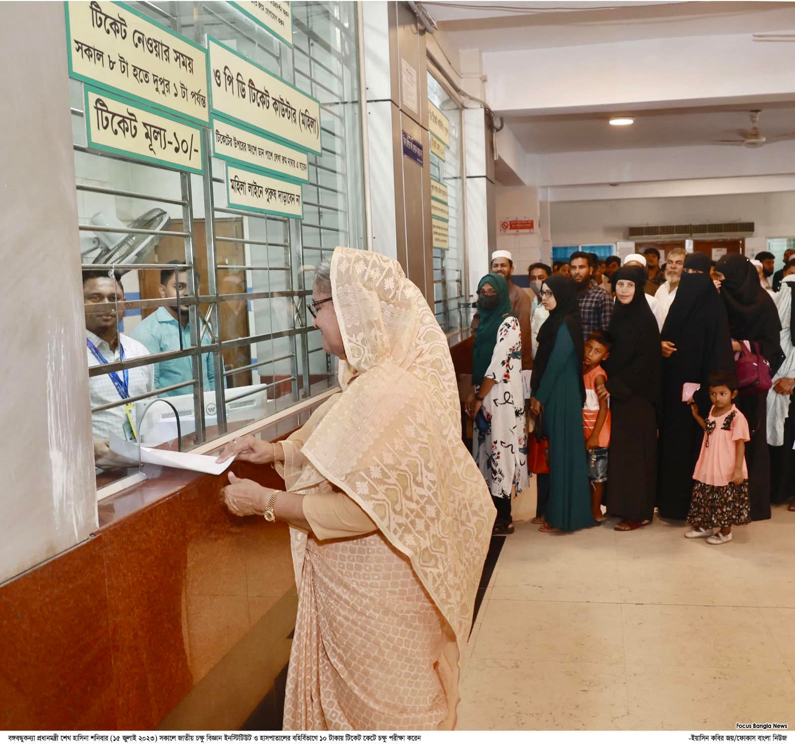 সাধারণ রোগীদের মতো ১০ টাকায় টিকিট কেটে চক্ষু পরীক্ষা করালেন প্রধানমন্ত্রী শেখ হাসিনা।